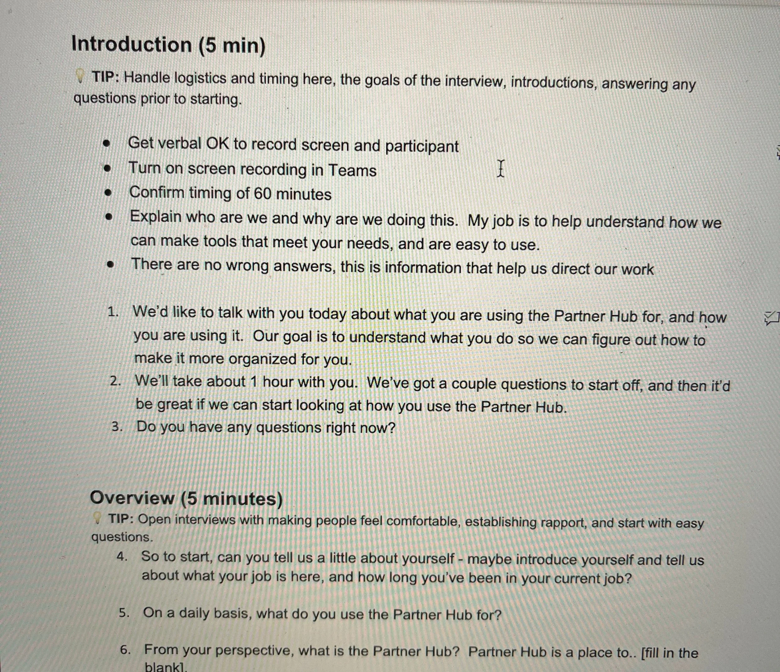 To start my research, I immersed myself in the problem through stakeholder interviews, a prior research audit, a data analytics audit, and a field visit. I quickly found that the existing research found high-level problems, but that more detailed research was needed to identify who was using the product, for which tasks, in what frequency, and what content and tools were more important to each group of partners.